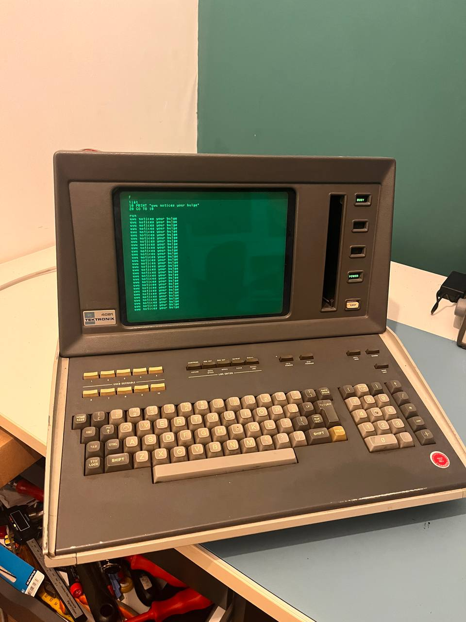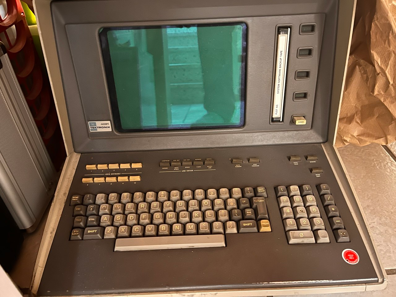 In my mind, Tektronix is a brand that makes electronics lab equipment like oscilloscopes and logic analyzers. Turns out, they made quite a few terminals and a couple of computers! A good friend saw this one for sale local to him, and I poked him till he agreed on picking it up for me.