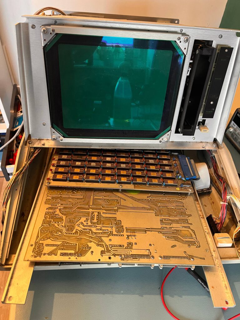 Something appeared on the display, which is a BIG improvement, and it all looks like the machine wants to boot. But the display is completely unreadable, which means it’s time to calibrate all voltages.